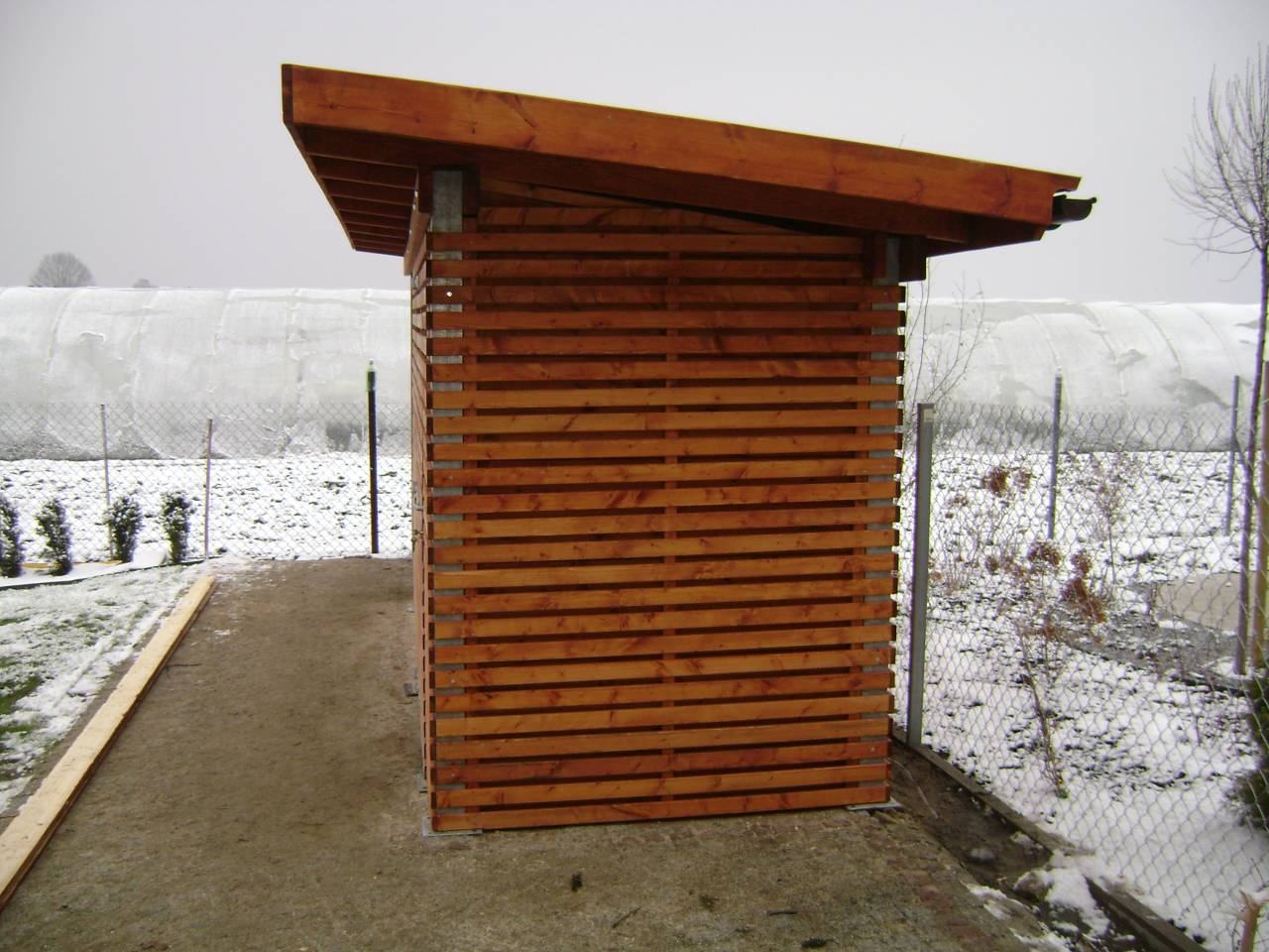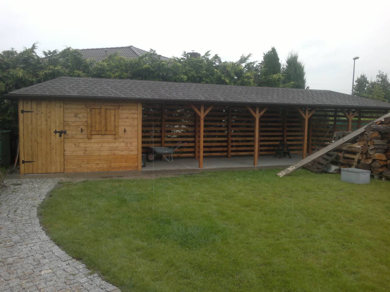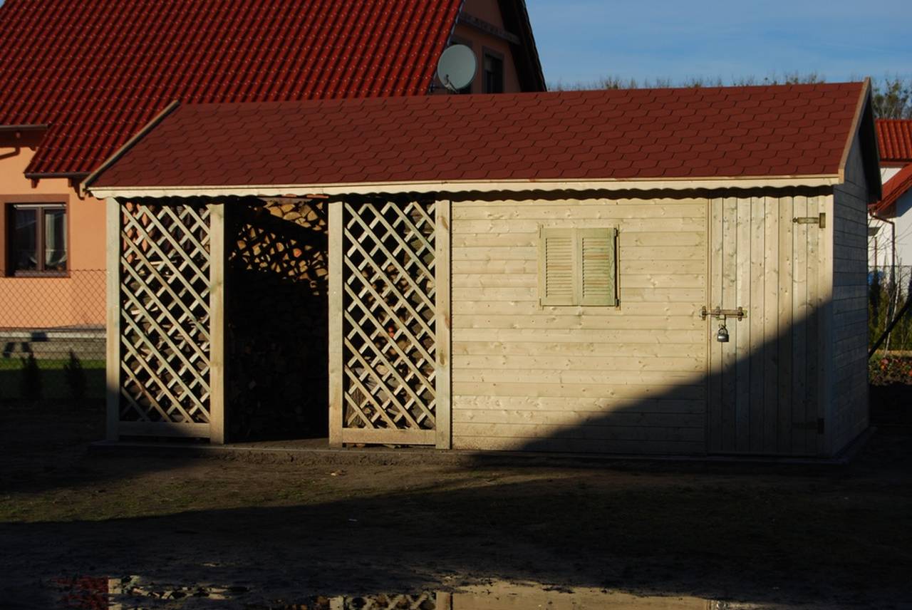 dzięki czemu zawdzięczają dużo odporność na złe warunki atmosferyczne oraz naturalny wygląd. Wychodząc naprzeciw rosnącym wymaganiom Klientów często wykonujemy domki narzędziowe w połączeniu z drewutniami. Konstrukcja pełni podwójna funkcje, która idealnie wkomponowuje się w otaczający ogród. Ogromna popularnością cieszą się domki narzędziowe wykonane w konstrukcji szkieletowej metalowej z deseczkami drewnianymi.